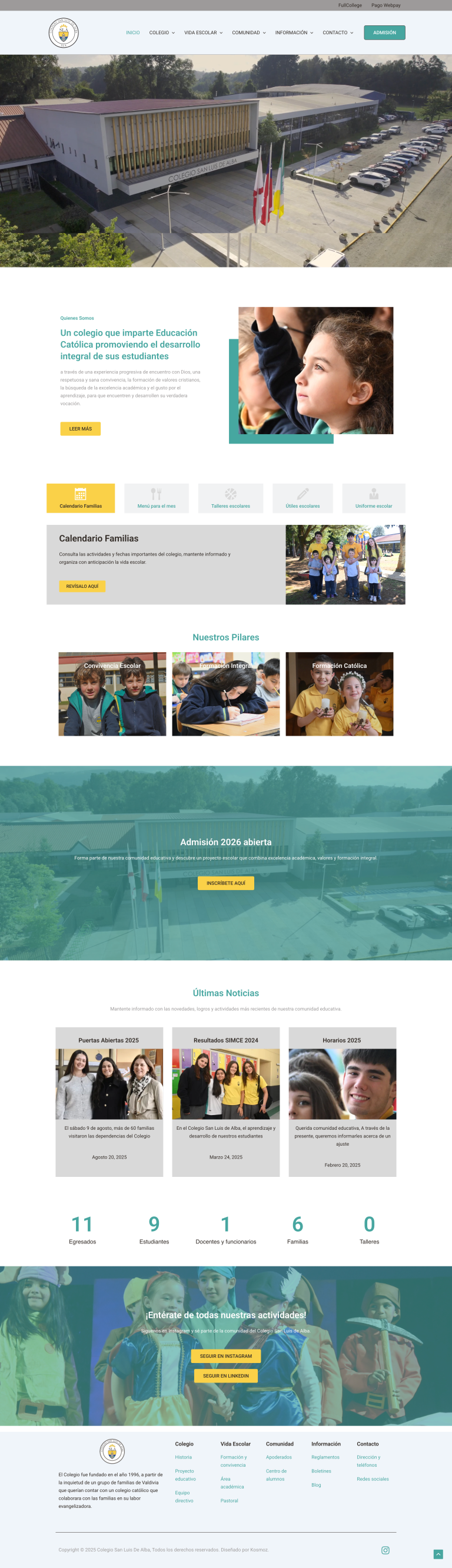 Sitio web construido WordPress para Colegio San Luis de Alba con sistema de inscripción de talleres, Región de Los Ríos